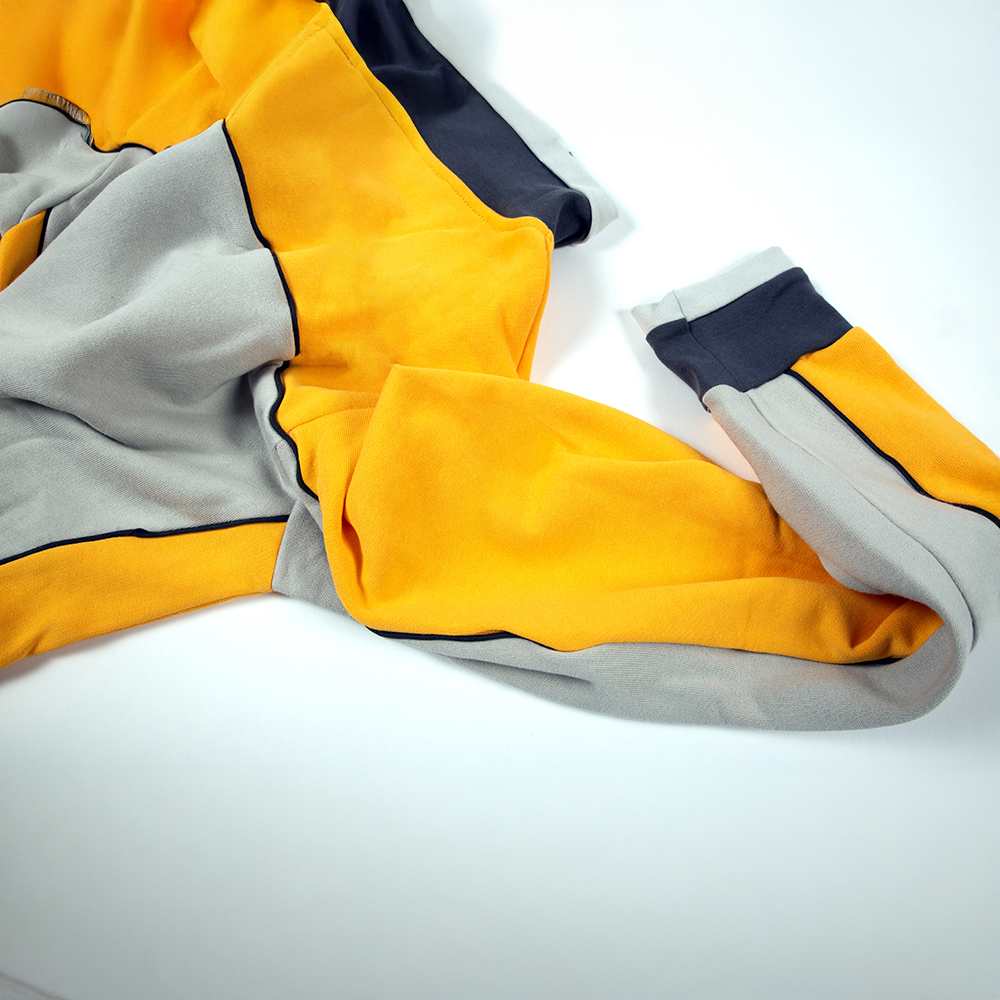 cerniera metà collo,collo in maglina bicolore,maniche con sottomanica in contrasto