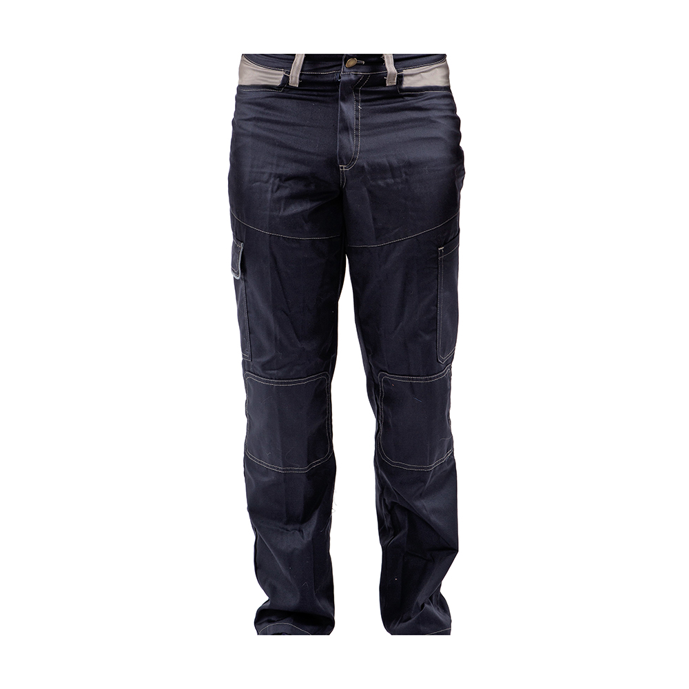 1 taschino posteriore interno a destra,2 tasconi:1 laterale coscia destra chiusura pattina con velcro e profilo in contrasto e 1 laterale coscia sinistra chiusura velcro,2 tasche interne aperte mostra in contrasto,cinta con elastico retro,cinta con passanti in contrasto e bottone,toppe di rinforzo stondate alle ginocchia,cuciture con filo a contrasto