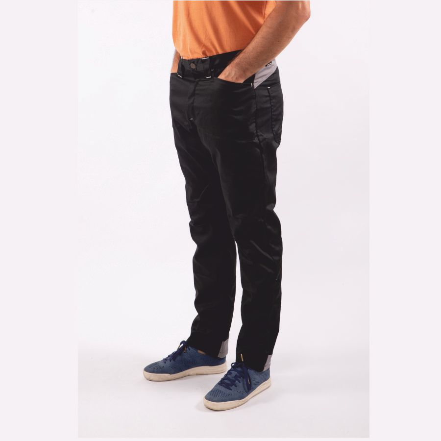 Tessuto multistagione resistente vestibilità moderna gamba stretta garantiscono un buon movimento senza ingombro eccessivo, carrè posteriore e battitacco fondo gamba in contrasto sono dei dettagli pratici e unici che distinguono questo modello.