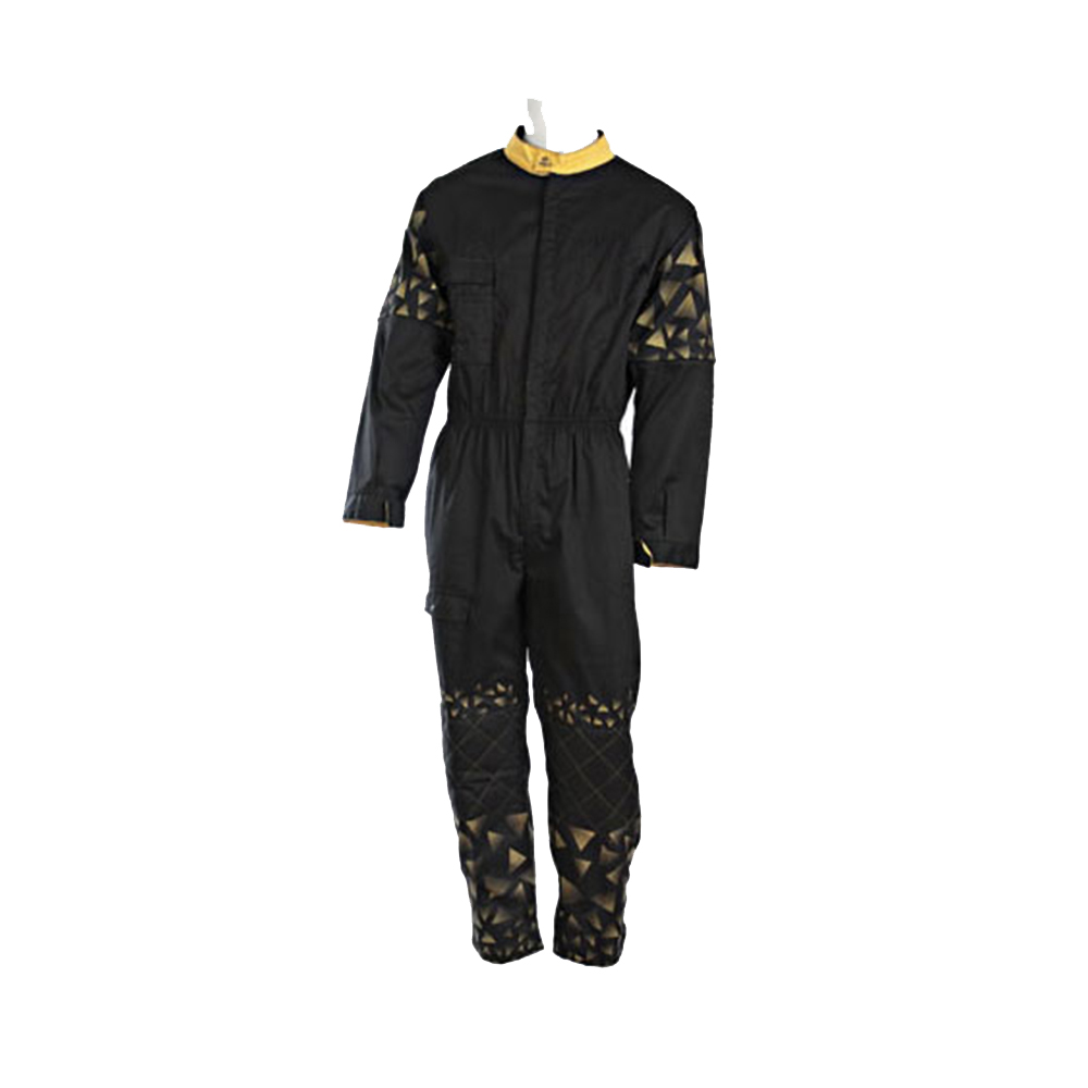 collo coreano chiusura con velcro, maniche con polsi in costina,1 taschino a destra con 2 settori portapenne,2 interne ,1tascone su gamba destra con pattina e chiusura con velcro con soffietto, toppe con trapunta su ginocchia